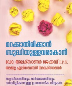 ഓര്മ്മശക്തി വര്ദ്ധിക്കുവാന് പരിശീലിക്കേണ്ട ശാസ്ത്രീയ രീതികളുടെ ലളിതമായ ആവിഷ്കാരമാണ് മറക്കാതിരിക്കാന് ബുദ്ധിയുള്ളവരാകാന് എന്ന പുസ്തകം.ഓർമ്മശക്തിയും ബുദ്ധിശക്തിയും വർദ്ധിപ്പിക്കാനുള്ള പ്രായോഗിക മാർഗ്ഗങ്ങൾ, ബുദ്ധിശക്തി വർദ്ധിപ്പിക്കുന്ന ആഹാരം ഭക്ഷണ പദാർത്ഥങ്ങൾ എന്നിവയെ സംബന്ധിച്ച പൂർണ്ണ വിവരങ്ങൾ.
